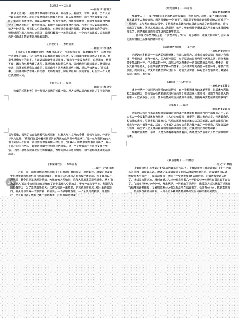 最美書(shū)評活動(dòng)是由同學(xué)們自發(fā)閱讀自己愛(ài)看、想看的書(shū)籍,并將自己關(guān)于書(shū)的體悟通過(guò)一小段文字表達出來(lái)。在比賽中,每個(gè)同學(xué)都踴躍參與,將自己愛(ài)看的書(shū)推薦給了大家,每一個(gè)書(shū)評的背后都是同學(xué)們對書(shū)自己獨到的見(jiàn)解。讓同學(xué)們可以在業(yè)余時(shí)間更好地享受生活,一壺茶、一本書(shū),亦可以是一個(gè)悠閑的下午。