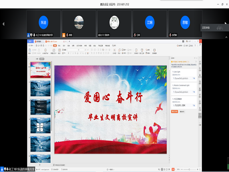 學(xué)院精心為每位畢業(yè)生制作畢業(yè)紀念優(yōu)盤(pán),表達學(xué)院對畢業(yè)生的殷殷期盼,望石化學(xué)子奔涌前行;畢業(yè)學(xué)子創(chuàng )作畢業(yè)歌曲《化說(shuō)再見(jiàn)》,記錄別樣青春時(shí)光;畢業(yè)典禮嚴肅活潑,讓畢業(yè)生擁有難忘且珍貴的記憶;考研宿舍感恩活動(dòng)傳遞正能量,難忘宿管阿姨、食堂阿姨的關(guān)懷照顧;畢業(yè)班會(huì )憶往昔話(huà)今朝,師生情深,不說(shuō)再見(jiàn);考研學(xué)霸班級勵志成長(cháng),激勵石化學(xué)子乘風(fēng)破浪;“青年講師團”畢業(yè)文明離校宣講活動(dòng),傳遞愛(ài)國情,砥礪奮斗行;誠信教育線(xiàn)上活動(dòng),學(xué)生感恩資助,自立自強;畢業(yè)班黨員學(xué)習經(jīng)驗分享,不忘初心,揚帆遠航;考研經(jīng)驗交流,站在學(xué)長(cháng)學(xué)姐的肩膀,逐夢(mèng)前行。