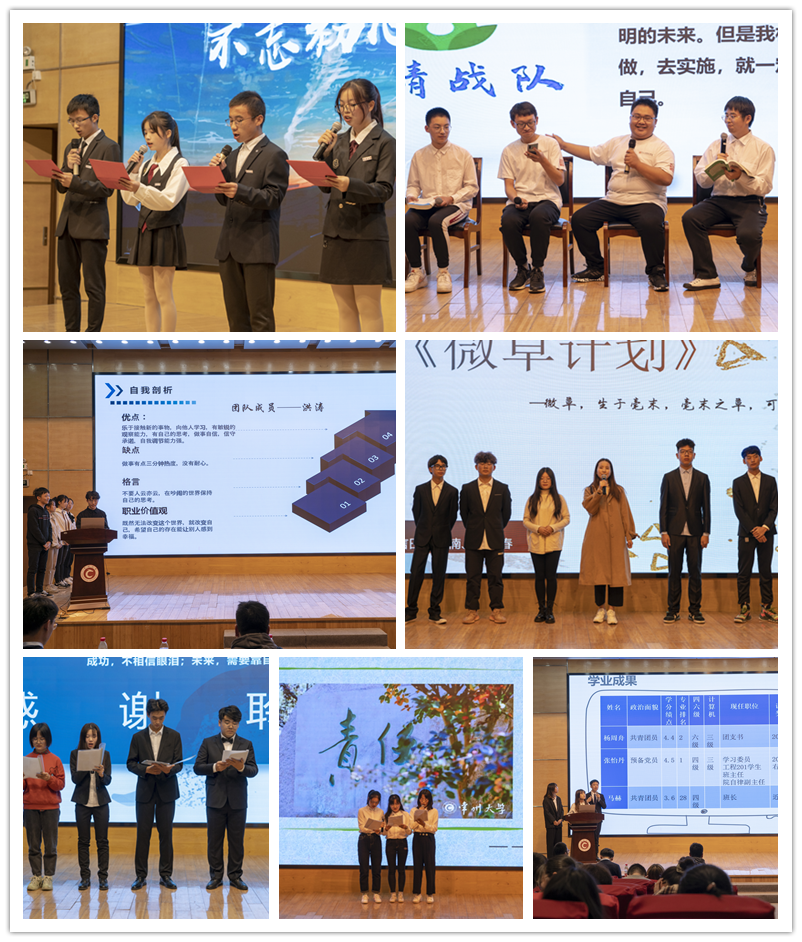 本次學(xué)業(yè)規劃大賽全校共29支團隊報名參賽,通過(guò)初賽的選拔,共有10支隊伍進(jìn)入決賽。決賽由個(gè)人學(xué)業(yè)規劃講解以及小組才藝展示兩個(gè)部分組成,參賽選手結合PPT從自我認識、學(xué)業(yè)規劃以及制定行動(dòng)策略三個(gè)方面進(jìn)行闡述,深刻規劃剖析了自己隊伍及團隊成員的優(yōu)劣勢,突出了隊伍特點(diǎn),指明了學(xué)業(yè)未來(lái)的努力方向。通過(guò)近三個(gè)小時(shí)的比賽,“未來(lái)工程隊”以生動(dòng)流暢的演講以及合理的學(xué)業(yè)規劃設計獲得了本次比賽的一等獎;“星之隊”、“扶搖戰隊”獲得二等獎;“走千山戰隊”、“晚晴戰隊”、“微草戰隊”獲得三等獎、“智聯(lián)戰隊”、“螢火戰隊”、“細雨戰隊”、“鳴海戰隊”獲得優(yōu)勝獎。