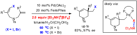 該課題組把這種研究策略稱(chēng)之為氫鍵作用促進(jìn)的還原消除,該策略確保常規的手性FerroPhos膦配體就能實(shí)現優(yōu)秀的不對稱(chēng)烯烴碳碘化反應,同時(shí)第一次實(shí)現了不對稱(chēng)烯烴碳溴化反應。通過(guò)實(shí)驗和理論計算研究,首次清晰的描繪了烷基鹵代烴還原消除反應的整個(gè)歷程,修正了僅受熱力學(xué)控制的傳統認知,加深了對該基元反應的理解。其中的氫鍵策略相信能促進(jìn)和推動(dòng)該基元反應在有機合成的應用。