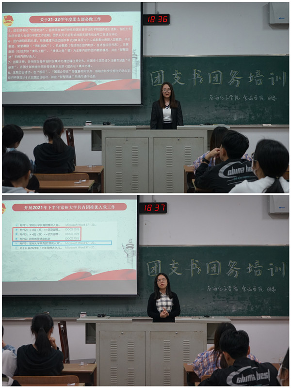 院團委書(shū)記孫潘老師從思想建設方面講述了共青團工作的重要性,指出各團支部應從信仰公開(kāi)課入手加強團員思想教育,做好團員發(fā)展與后續教育工作,加強團支部建設,提升團支部凝聚力。副書(shū)記許涵僑同學(xué)對“雙述雙評”、“團日活動(dòng)”、“黨史學(xué)習會(huì )”的開(kāi)展進(jìn)行了具體培訓,并對下半年推優(yōu)工作進(jìn)行了具體布置。