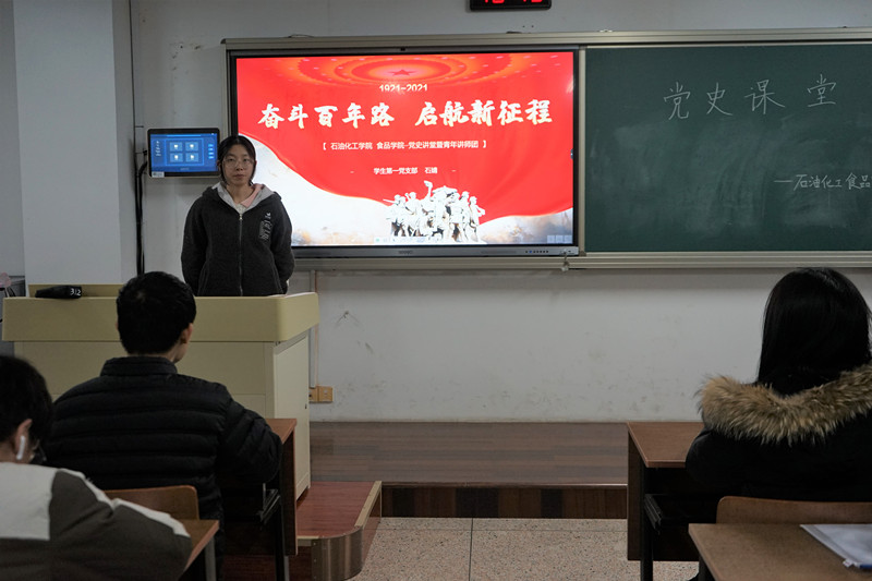 為貫徹落實(shí)習近平總書(shū)記關(guān)于黨史學(xué)習教育的重要論述,充分發(fā)揮“青年講師團”理論武裝“輕騎兵”的作用,把黨的科學(xué)理念在青年中落實(shí),12月1日18:30,我院在W2312教室開(kāi)展以“奮斗百年路,啟航新征程”為主題的四史講堂。本次四史講堂由青年講師團成員石婧主持。