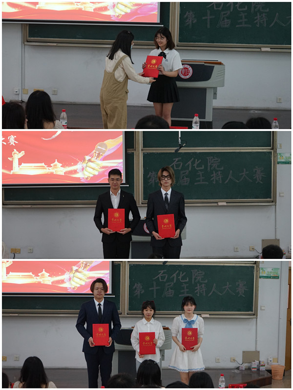 經(jīng)過(guò)前期初賽選拔,共六位選手進(jìn)入本次決賽。他們以不同的主題侃侃而談:應化212陳閆明宇通過(guò)《青年大學(xué)習家鄉特別版》帶大家認識自己的家鄉,美麗的海濱城市、浪漫之都——大連;能化211蔡伽豪將老一輩共產(chǎn)黨員為建設中國共產(chǎn)黨的努力展現得淋漓盡致,希望當代青年不斷增強“守初心、擔使命”的思想意識和行動(dòng)自覺(jué);作為美食主播,能化212張厚盛通過(guò)《舌尖上的美味——廣西篇》呈現給大家有著(zhù)飲食王國的美譽(yù)的中國美食文化;化工215郭慧慧帶大家認識了一位網(wǎng)紅,她將讀書(shū)之氣帶給我們,點(diǎn)點(diǎn)星火傳出了她自己的光芒;食品211李欣宇基于《送你一朵小紅花》這部電影,倡導愛(ài)與珍惜;化工214李芝穎由藝術(shù)鑒賞帶大家走進(jìn)故事背后的真相,了解一段有關(guān)中國文化征服西方世界的長(cháng)達八百年的歷史。在即興評述的環(huán)節,六位選手現場(chǎng)抽取自己的主題,以?xún)?yōu)秀的表現、沉穩的心態(tài)充分展示自己的主持功底。最終,化工215郭慧慧榮獲一等獎;能化212張厚盛、應化212陳閆明宇榮獲二等獎;能化211蔡伽豪、食品211李欣宇、化工214李芝穎榮獲三等獎。
