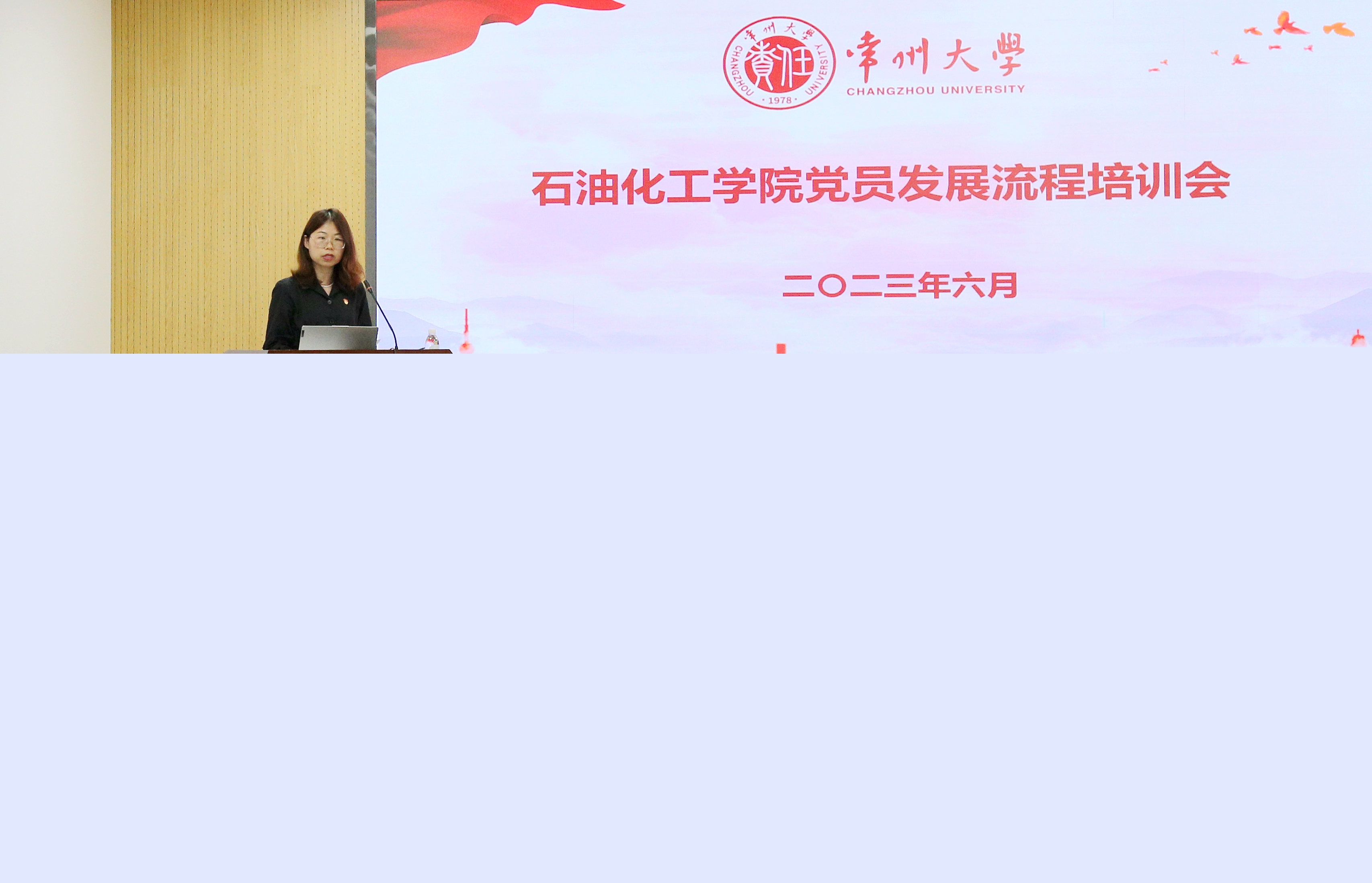 輔導員趙彩霞就申請入黨、入黨積極分子的確定和培養、發(fā)展對象的確定和考察、預備黨員的接收、預備黨員轉正等發(fā)展階段需要具備的條件及時(shí)間邏輯、規范填寫(xiě)入黨材料要求、檔案規范整理要點(diǎn)等多方面進(jìn)行了講解。