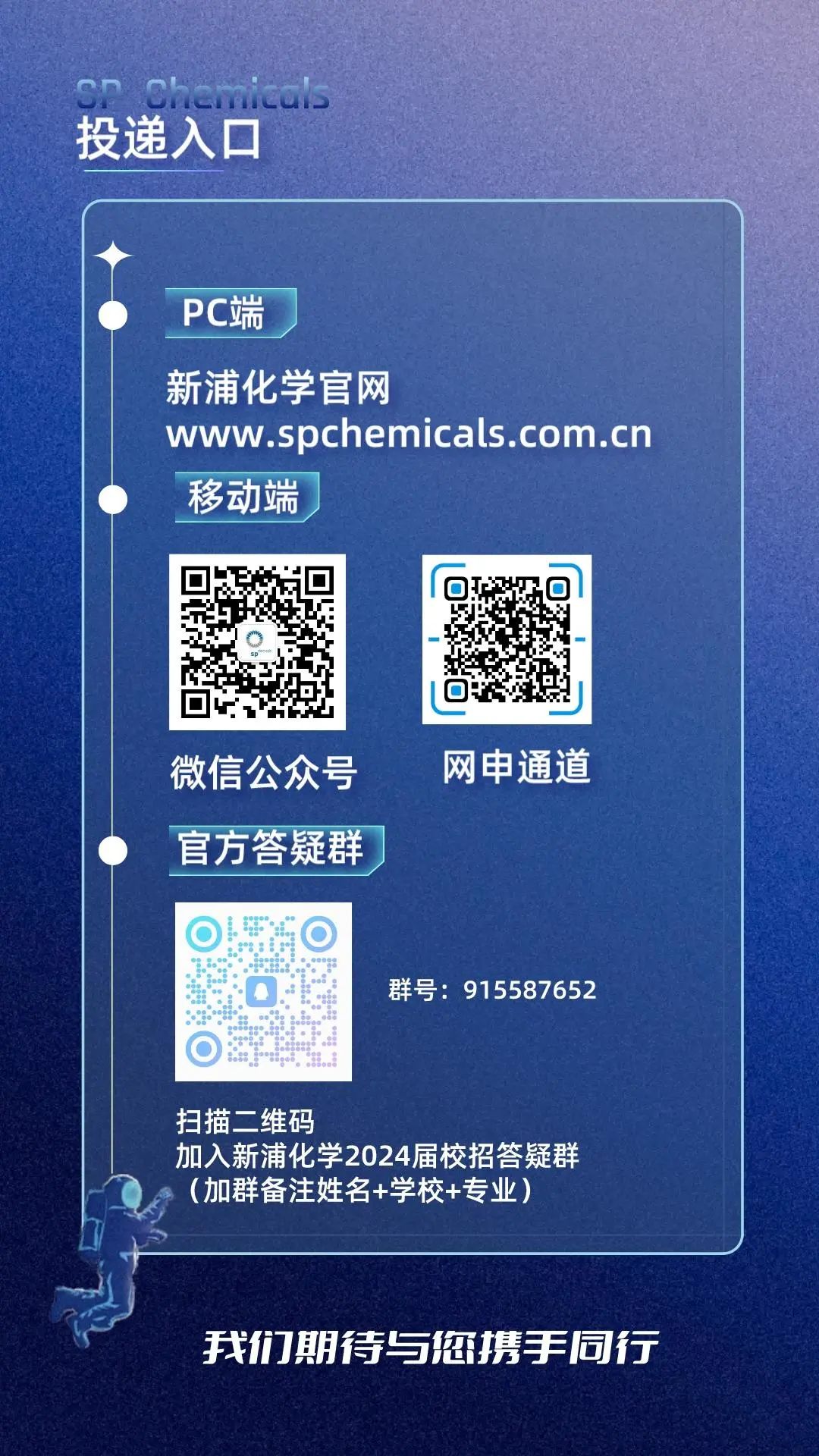 請將個(gè)人簡(jiǎn)歷發(fā)送至:zhaopin@spchemicals.com。更多詳細信息請訪(fǎng)問(wèn)我們的官方網(wǎng)站:https://www.spchemicals.com.cn/或關(guān)注新浦化學(xué)公眾號。