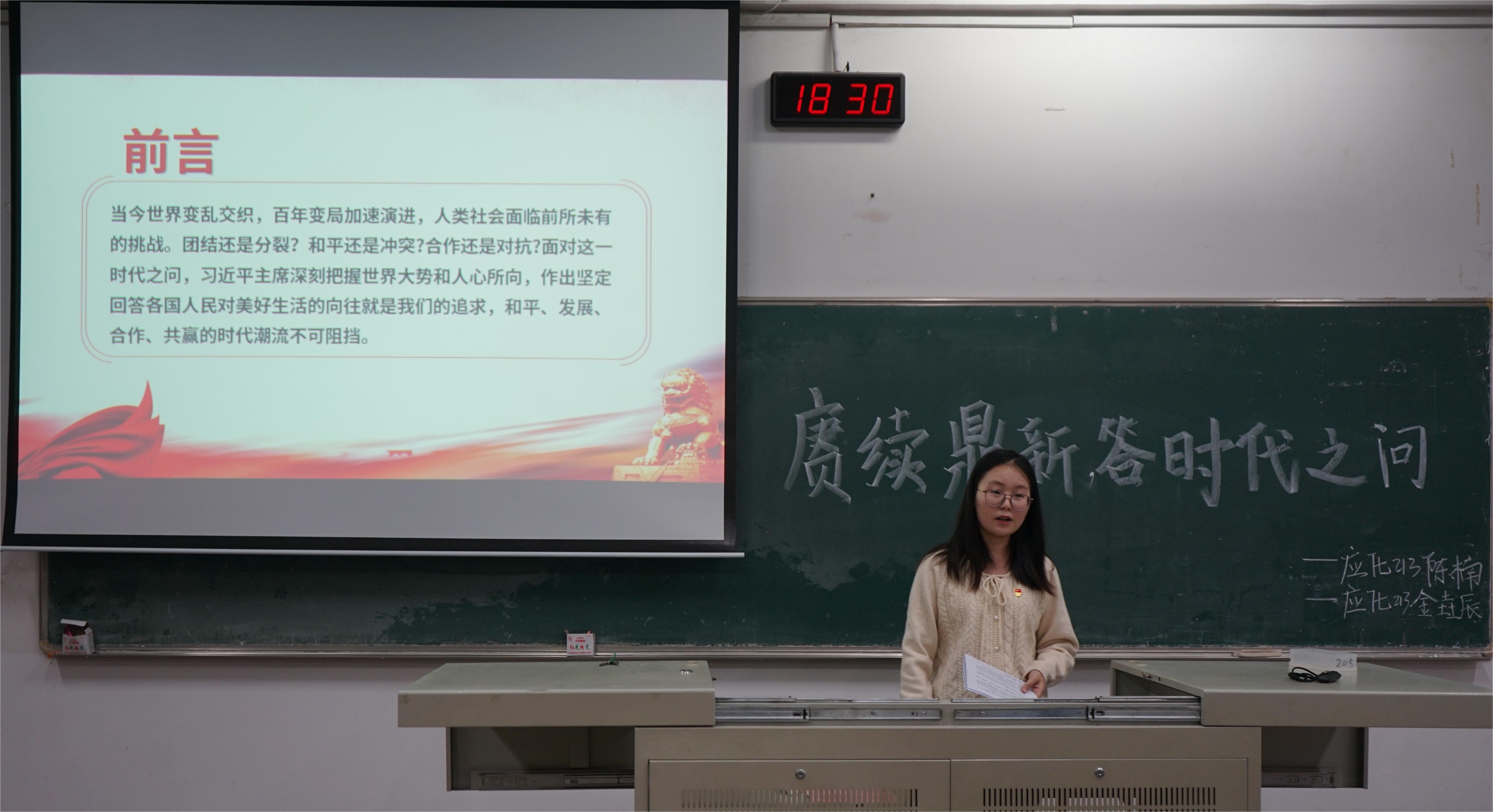 當今世界變亂交織,百年變局加速演進(jìn),人類(lèi)社會(huì )面臨前所未有的挑戰。為幫助我院學(xué)生明確時(shí)代任務(wù),答好時(shí)代問(wèn)卷,我院于10月24日在W1205舉辦“青年講師團”系列講座——賡續鼎新,答時(shí)代之問(wèn)。由我院應化213班陳楠、金垚辰主講,各年級學(xué)生代表參加。