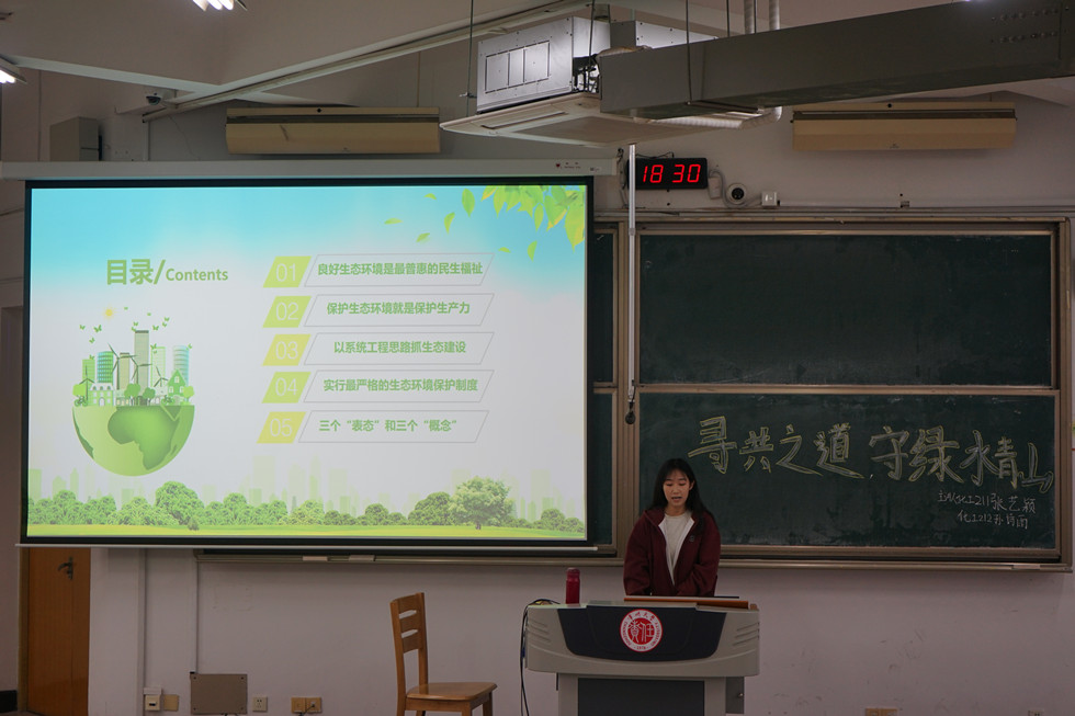 為弘揚生態(tài)文明理念,建設綠色家園,我院于4月24日在W20舉辦“青年講師團”系列講座——“尋共存之道,守綠水青山”。本次講座由我院學(xué)生第一黨支部黨員張藝穎、孫詩(shī)雨主講,各年級學(xué)生代表參加。