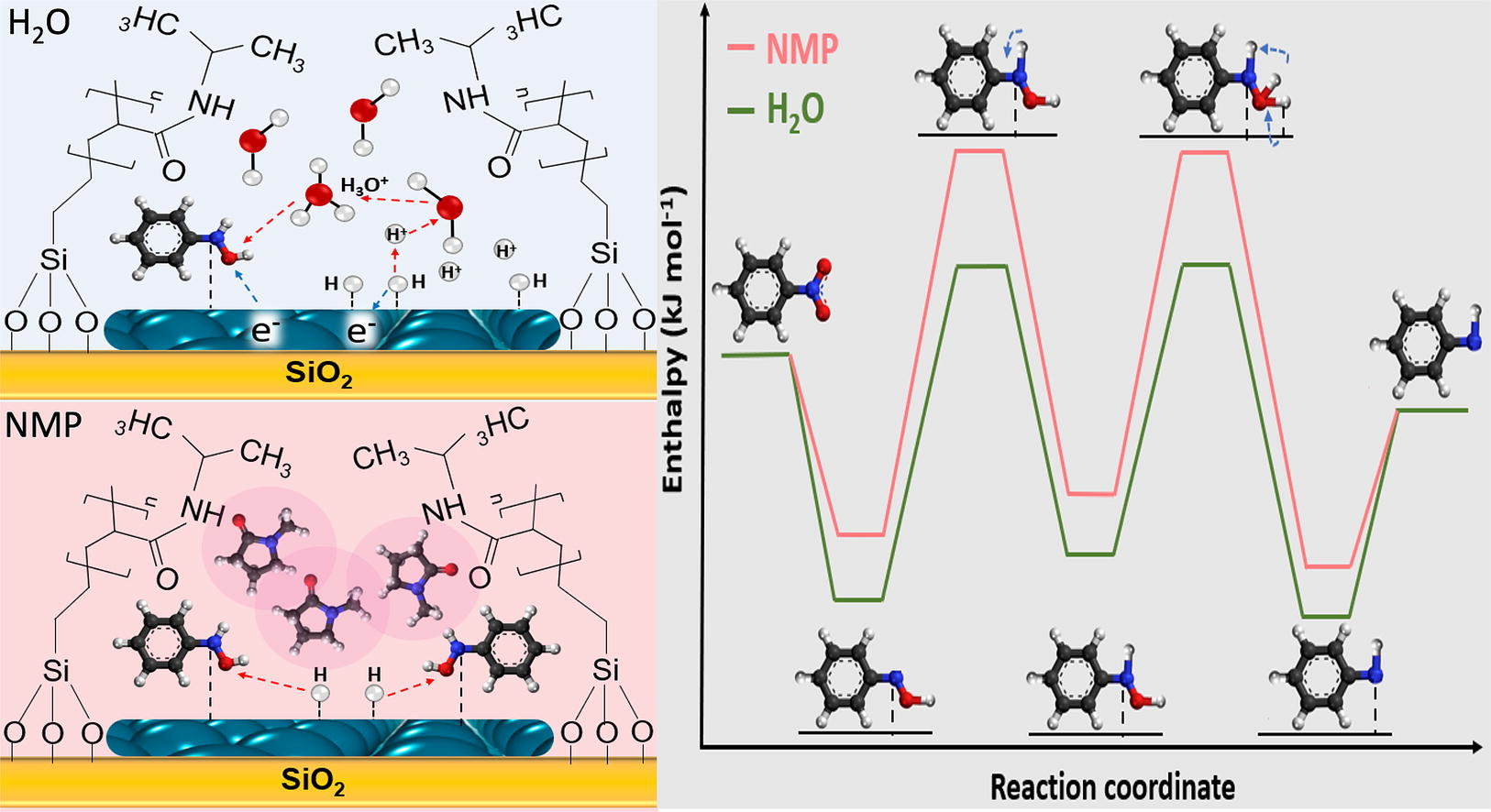 在前期研究聚合物對催化劑誘導的溶劑化效應的基礎上(ACS Catalysis 2023, 13, 10, 6590–6602,Top期刊,封面論文),中文解析見(jiàn):https://mp.weixin.qq.com/s/6ZsBwg6RtE0h1wOAPhf3_w,以及溶劑特性(質(zhì)子溶劑和非質(zhì)子溶劑)對于聚合物修飾的催化劑在硝基苯加氫反應中,能夠極大地改變表觀(guān)活化能、選擇性和反應速率的基礎上。(Journal of Catalysis, 2023: 115157) https://doi.org/10.1016/j.jcat.2023.115157