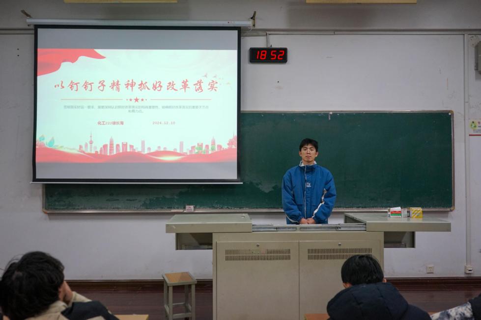 為積極響應黨的二十屆三中全會(huì )的號召,以釘釘子精神全面推動(dòng)各項改革舉措的落實(shí),我院于12月10日在W1205教室開(kāi)展了“青年講師團”系列講座第五講——以釘釘子精神抓好改革落實(shí)。本次講座由學(xué)生第一黨支部化工222徐長(cháng)海主講,我院學(xué)生代表參加。