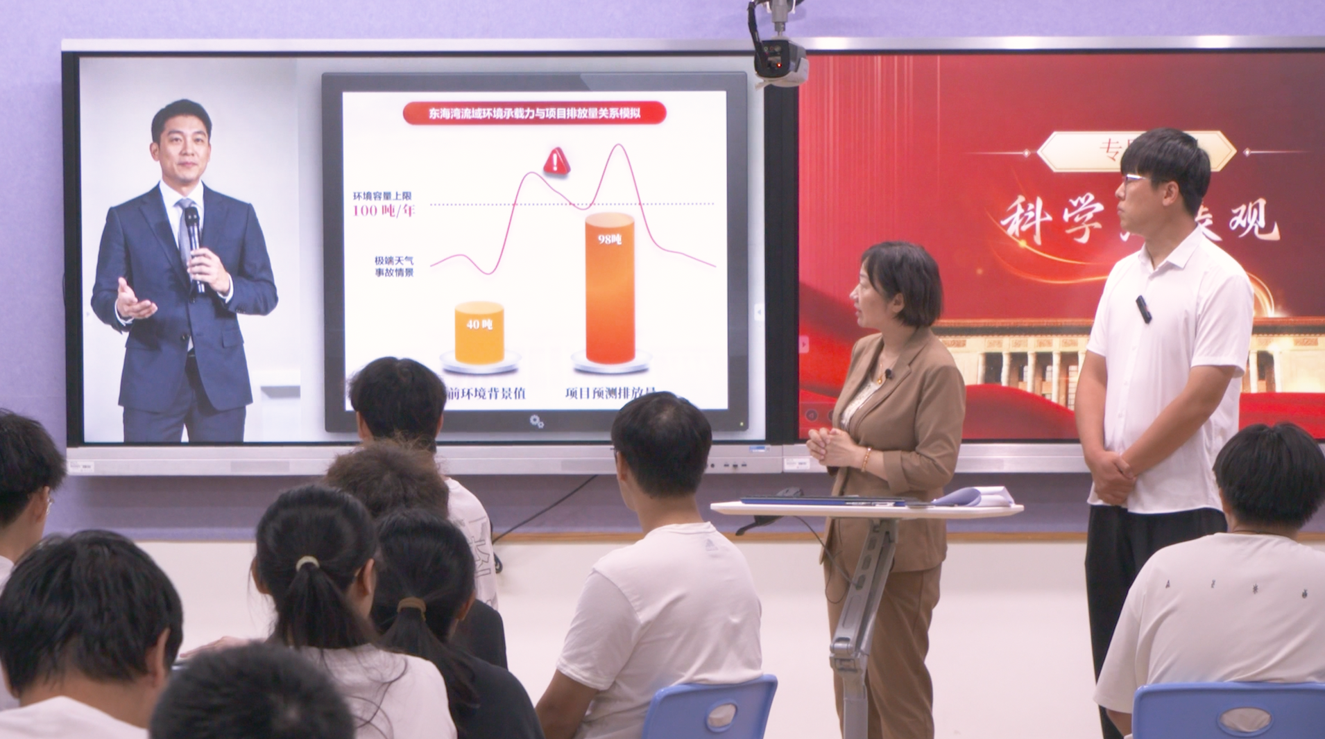 課程伊始,朱霽老師主持學(xué)生分角色扮演聽(tīng)證會(huì ),著(zhù)重闡述科學(xué)發(fā)展觀(guān)在化工領(lǐng)域里的關(guān)鍵作用,課程圍繞一個(gè)高度仿真的“乙烯擴建項目模擬聽(tīng)證會(huì )”展開(kāi),石劍老師以“專(zhuān)業(yè)顧問(wèn)”身份,從化工生產(chǎn)的特性出發(fā),深入闡釋了“社會(huì )許可”這一現代工程領(lǐng)域的核心概念,引導學(xué)生理解:一個(gè)項目的成功,不僅取決于技術(shù)可行和經(jīng)濟合理,更關(guān)鍵在于能否獲得民眾的理解和信任?!斑@不僅是一道技術(shù)題,更是一道倫理題和社會(huì )題,”石劍在點(diǎn)評中強調,“這正是科學(xué)發(fā)展觀(guān)‘以人為本’核心立場(chǎng)在我們化工行業(yè)最直接的體現。