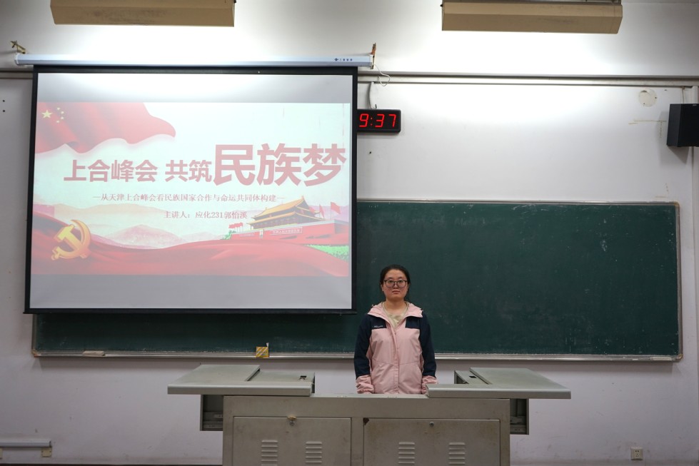 10月28日晚,我院于W1201教室成功舉辦“青年講師團”系列講座第二講——“上合峰會(huì ),共筑民族夢(mèng)”。本次講座由第二學(xué)生黨支部黨員應化231班郭怡溪擔任主講。