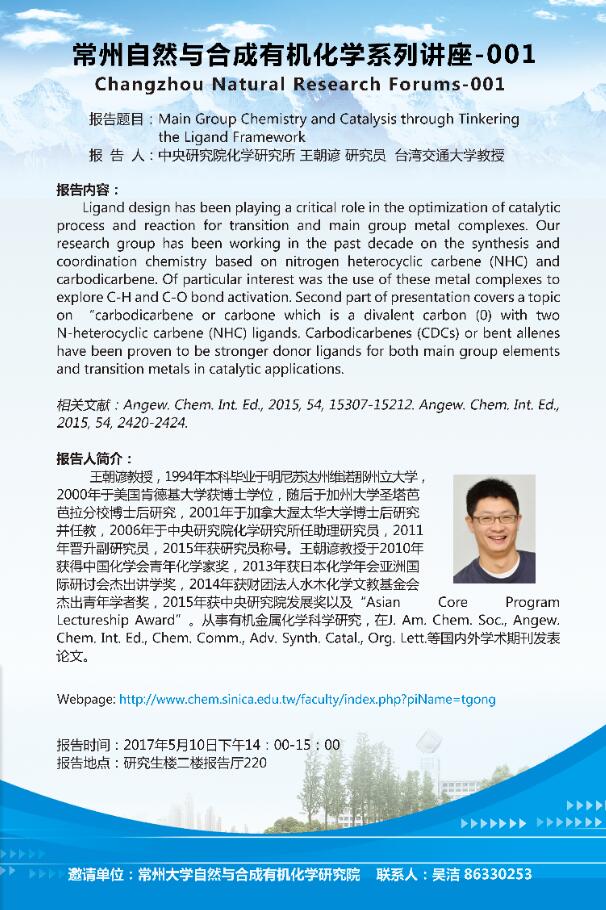 | 【講座】5月10日學(xué)術(shù)報告---王朝諺研究員(中央研究院化學(xué)研究所) |