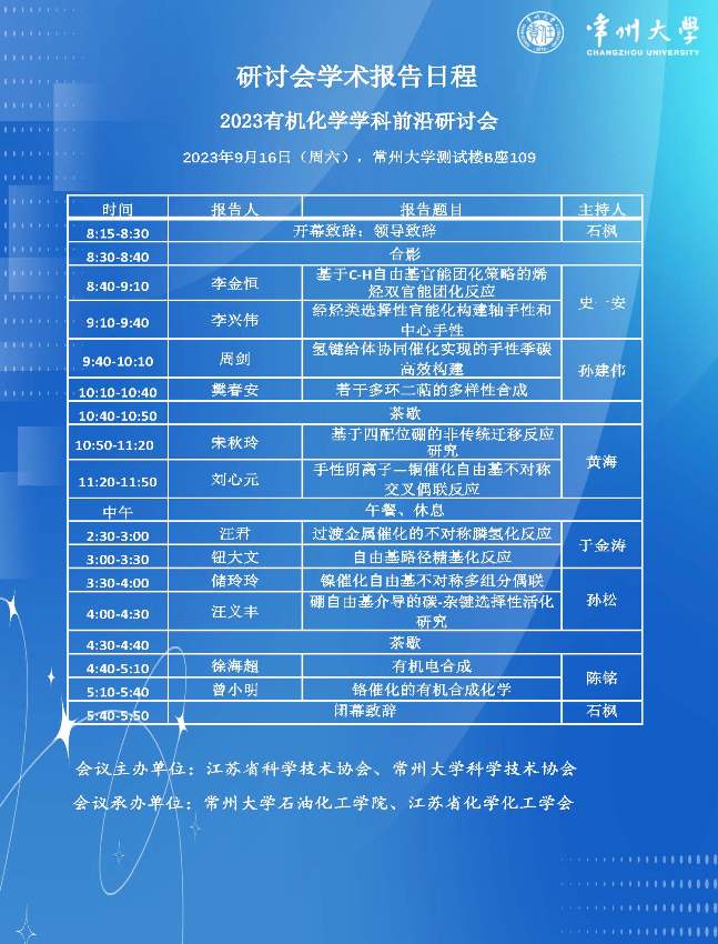 | 【學(xué)術(shù)會(huì )議】2023有機化學(xué)學(xué)科前沿研討會(huì )9月16日 |