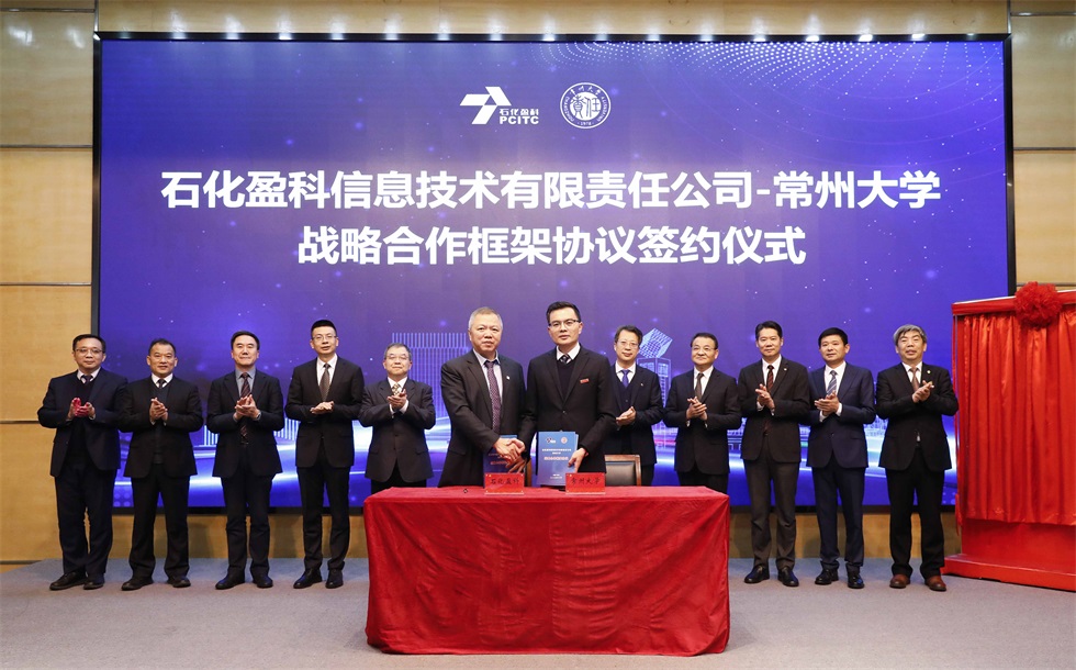 12月15日,石化盈科信息技術(shù)有限責任公司(以下簡(jiǎn)稱(chēng)“石化盈科”)與常州大學(xué)戰略合作框架協(xié)議簽約儀式暨“石化盈科-常州大學(xué)能源化工安全生產(chǎn)智能化技術(shù)及工業(yè)軟件聯(lián)合研發(fā)中心”(以下簡(jiǎn)稱(chēng)“聯(lián)合研發(fā)中心”)揭牌儀式在常州大學(xué)科教城校區文彰樓報告廳舉行。石化盈科董事長(cháng)、黨委書(shū)記周昌,黨委委員、副總裁張劉軍,常州大學(xué)黨委書(shū)記徐守坤,原黨委書(shū)記陳群,黨委副書(shū)記、校長(cháng)陳海群,副校長(cháng)晏成林出席活動(dòng)。石化盈科人力資源部、企改法律部、華東區域分公司、科技信息部、過(guò)程控制事業(yè)部,常州大學(xué)相關(guān)職能部門(mén)和學(xué)院負責人、教師和學(xué)生代表參加活動(dòng)。陳海群主持活動(dòng)。