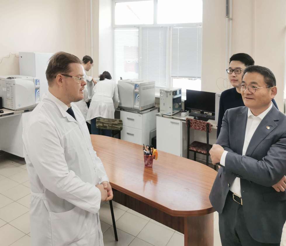 訪(fǎng)問(wèn)烏法科技大學(xué)期間,我校代表團會(huì )見(jiàn)了分管科研創(chuàng )新事務(wù)副校長(cháng)格奧爾吉·阿格耶夫、分管教育與發(fā)展副校長(cháng)尤利婭·羅漢諾娃、分管?chē)H事務(wù)副校長(cháng)麗塔·菲麗波娃,格奧爾吉紹了烏法科技大學(xué)的發(fā)展情況,并表示希望與常州大學(xué)繼續深入合作。會(huì )談中,雙方就強化兩校材料科學(xué)碩士雙學(xué)位聯(lián)合培養機制,開(kāi)拓兩校機械、化工、商科領(lǐng)域的學(xué)生聯(lián)合培養項目進(jìn)行交流,對兩校開(kāi)展中外合作辦學(xué)項目事宜達成合作共識,并續簽了功能納米結構材料(中俄)聯(lián)合實(shí)驗室的合作協(xié)議。會(huì )后,代表團參觀(guān)了化工學(xué)院實(shí)驗室,就兩校共建化工新材料聯(lián)合實(shí)驗室、聯(lián)合開(kāi)展科研項目事宜進(jìn)行了深入交流并達成了合作共識。(通訊員/王建輝審核/魏偉編輯/孫悅)