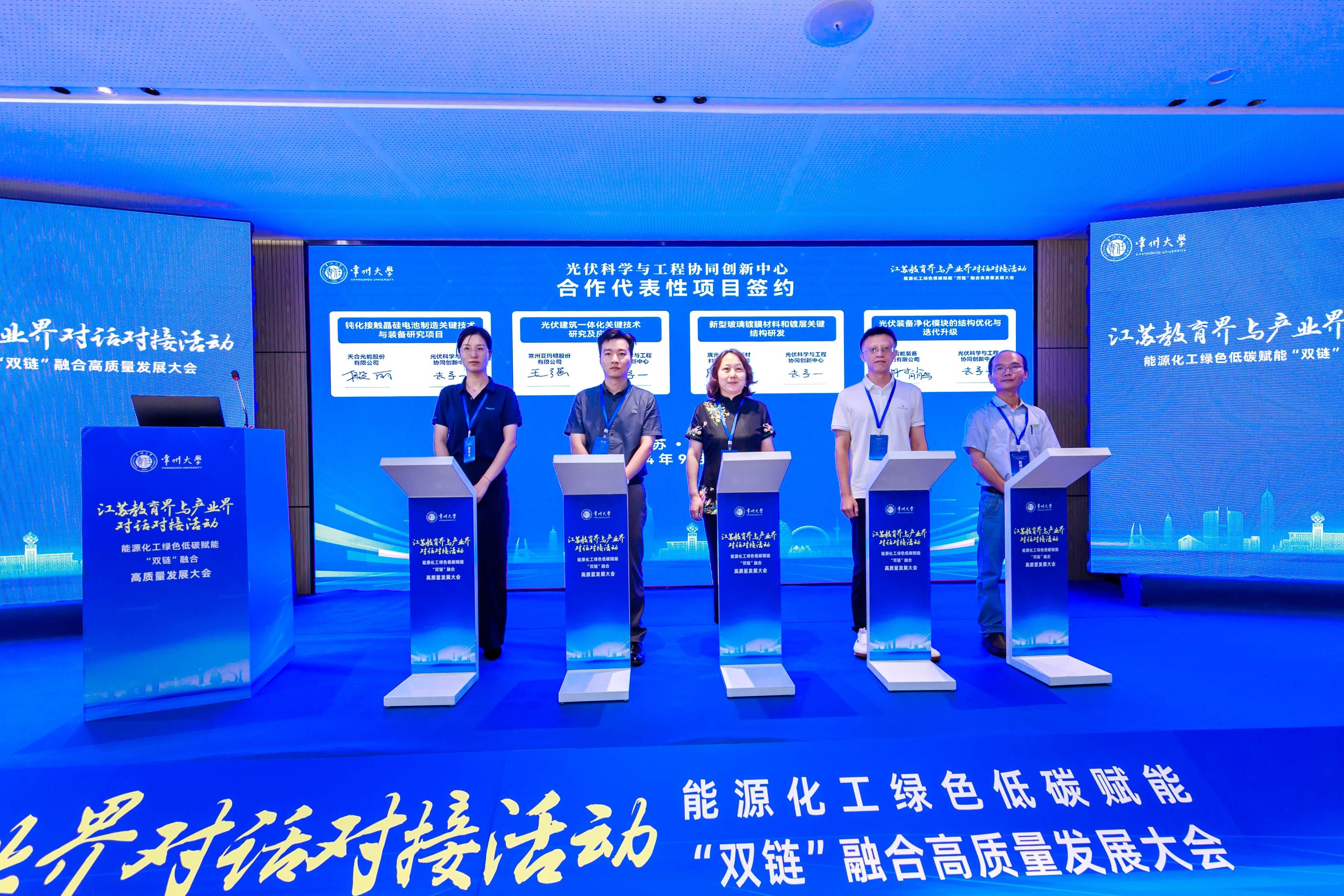 919-20日,由江蘇省教育廳指導,常州大學(xué)主辦,江蘇省先進(jìn)催化與綠色制造協(xié)同創(chuàng )新中心(簡(jiǎn)稱(chēng)“催化協(xié)同中心”)、江蘇省光伏科學(xué)與工程協(xié)同創(chuàng )新中心(簡(jiǎn)稱(chēng)“光伏協(xié)同中心”)聯(lián)合承辦的江蘇教育界與產(chǎn)業(yè)界對話(huà)對接活動(dòng)——能源化工綠色低碳賦能“雙鏈”融合高質(zhì)量發(fā)展大會(huì )在常州大學(xué)金壇教育科創(chuàng )園舉行。