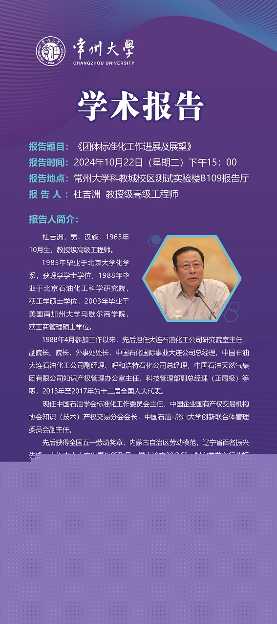 | 【學(xué)術(shù)報告】10月22日學(xué)術(shù)報告—杜吉洲教授級高級工程師 |