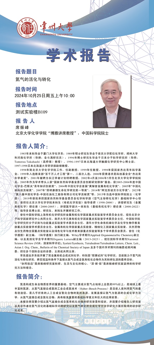 【學(xué)術(shù)報告】10月25日學(xué)術(shù)報告—席振峰院士
