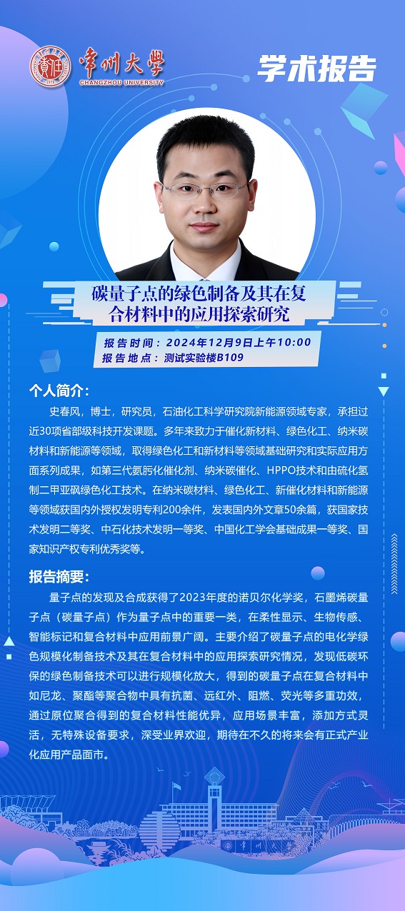 | 【學(xué)術(shù)報告】12月9日學(xué)術(shù)報告—史春風(fēng)研究員 中石化石油化工科學(xué)研究院 |