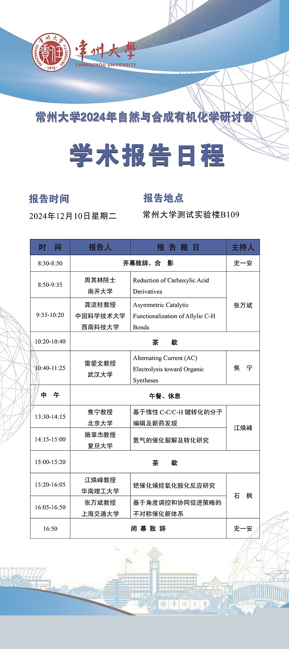 | 【學(xué)術(shù)會(huì )議】常州大學(xué)2024年自然與合成有機化學(xué)研討會(huì ) |