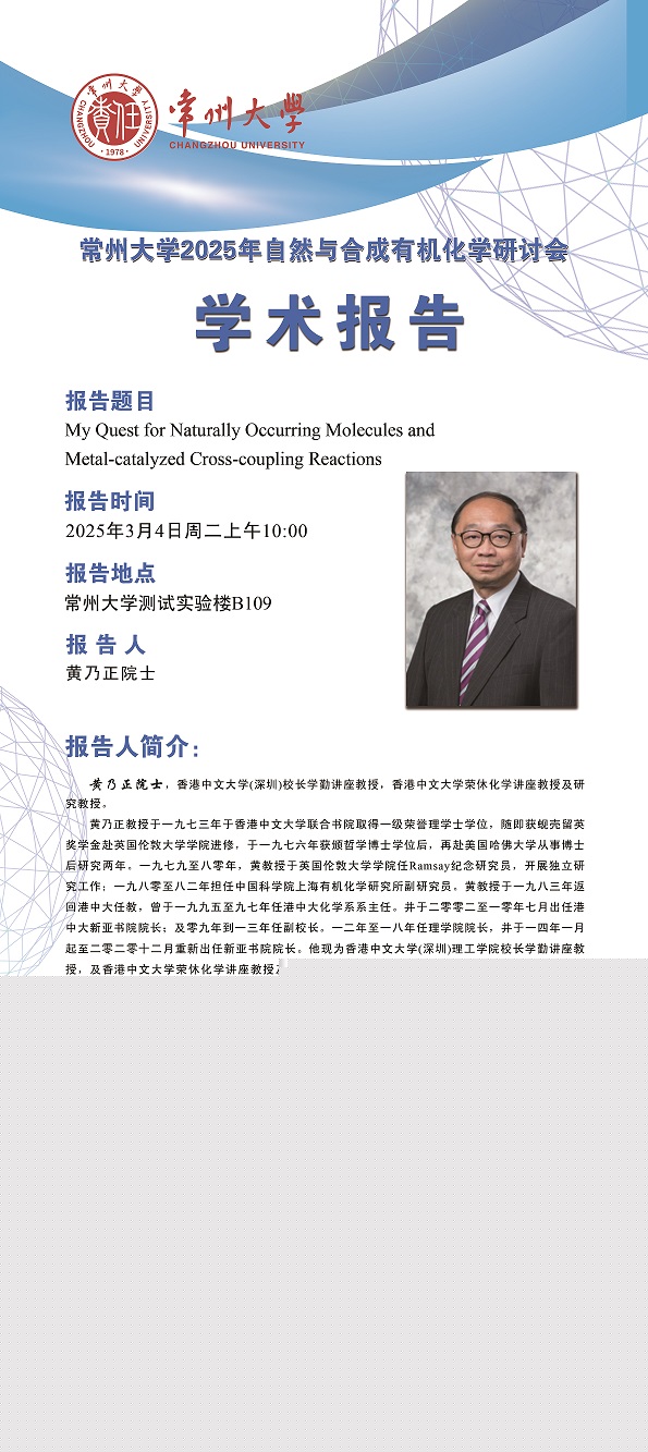 | 【學(xué)術(shù)報告】3月4日學(xué)術(shù)報告—黃乃正院士 香港中文大學(xué) |