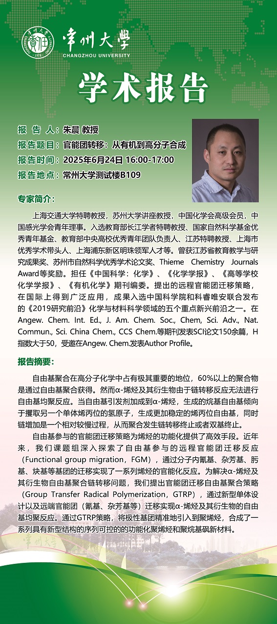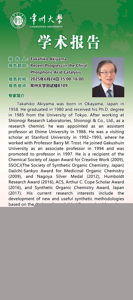 【學(xué)術(shù)報告】6月24日功能雜環(huán)研究院學(xué)術(shù)報告—Takahiko Akityama教授 學(xué)習院大學(xué) 朱晨教授 上海交通大學(xué)