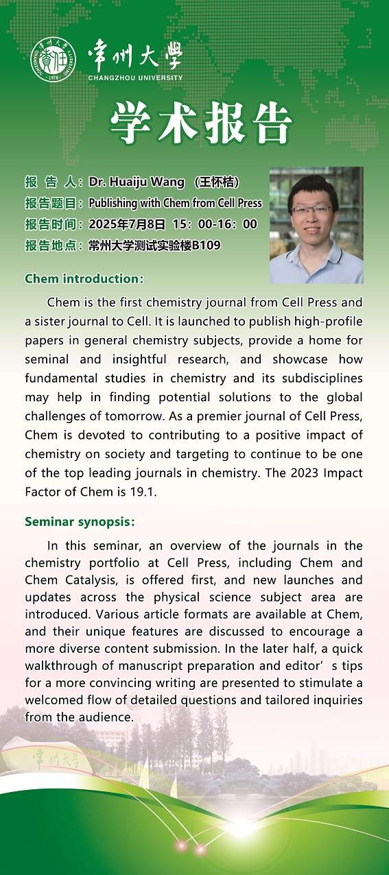 | 【學(xué)術(shù)報告】7月8日功能雜環(huán)研究院學(xué)術(shù)報告——王懷桔 chem雜志編輯 |