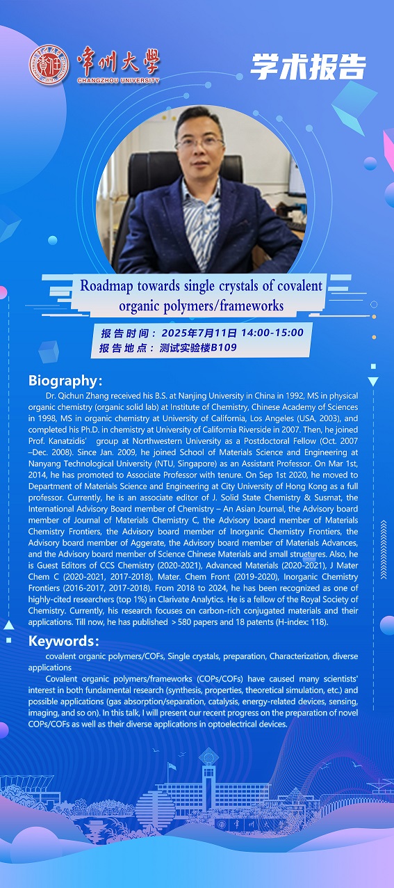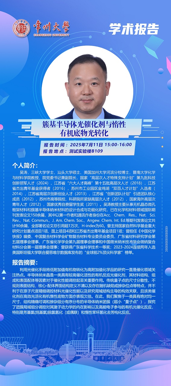 【學(xué)術(shù)報告】7月11日學(xué)術(shù)報告——張其春教授 香港城市大學(xué) 吳濤教授 暨南大學(xué)