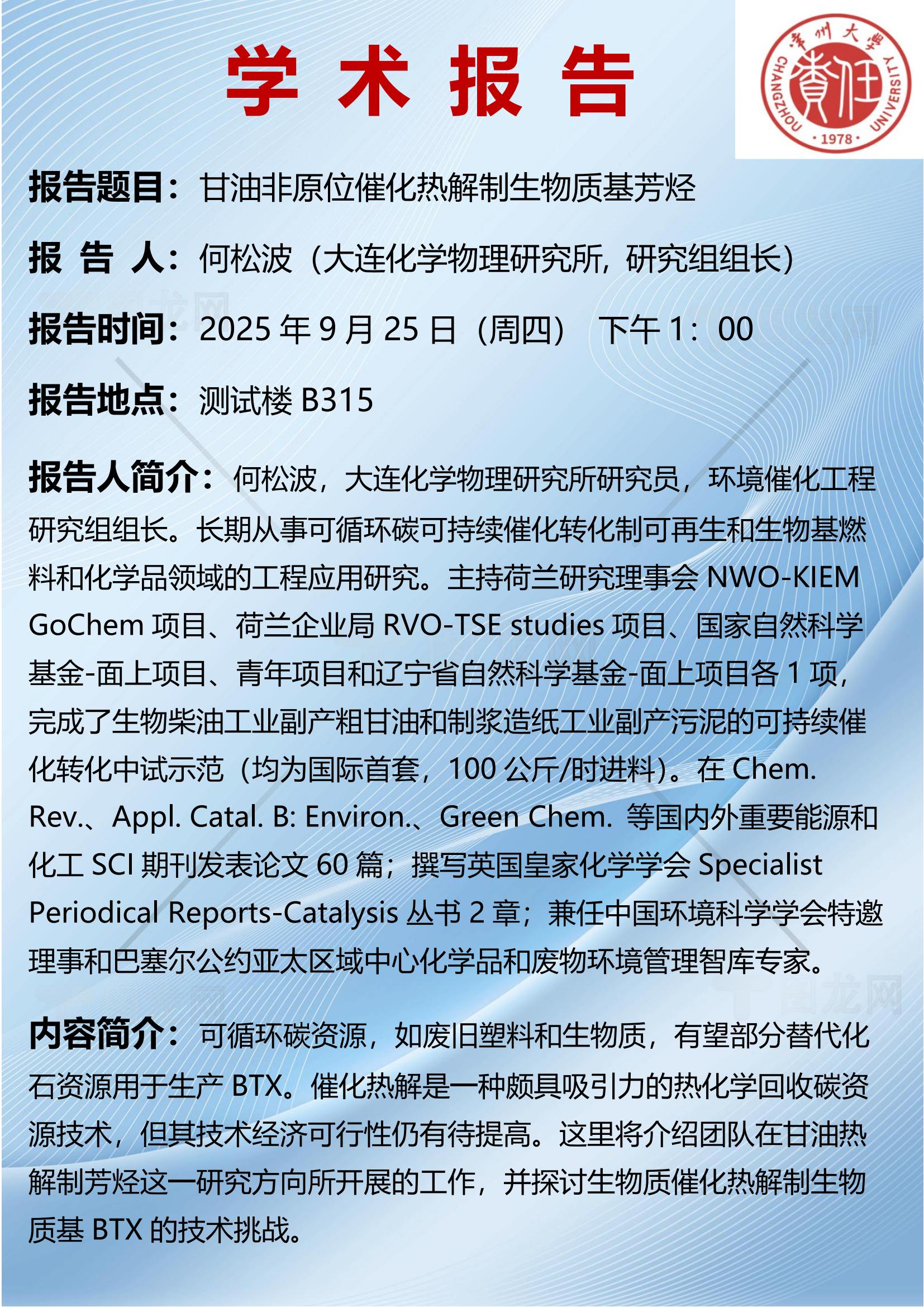 | 【學(xué)術(shù)報告】9月25日甘油非原位催化熱解制生物質(zhì)基芳烴 |