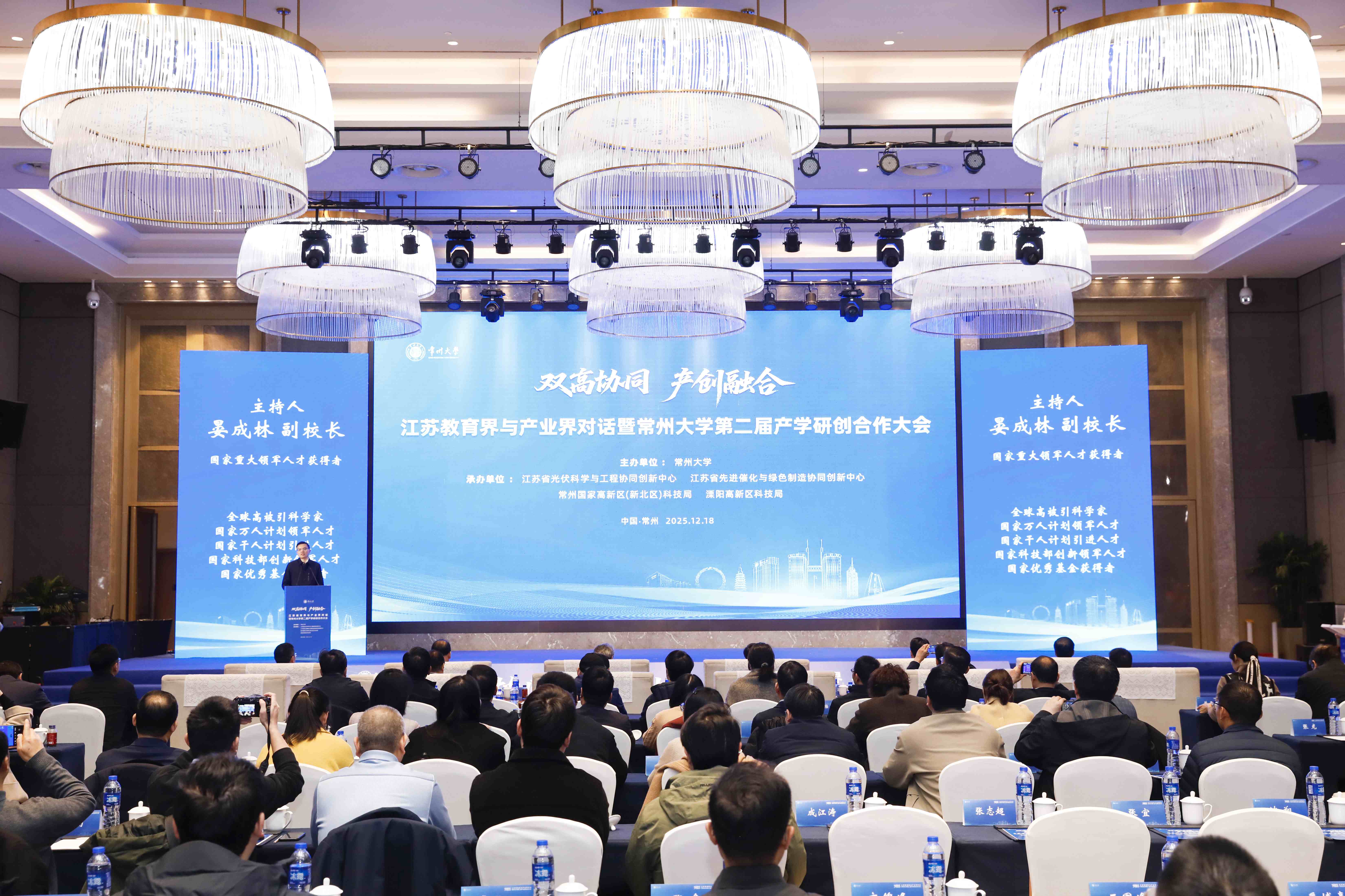 12月18日上午,以“雙高協(xié)同·產(chǎn)創(chuàng )融合”為主題的江蘇教育界與產(chǎn)業(yè)界對話(huà)暨常州大學(xué)第二屆產(chǎn)學(xué)研創(chuàng )合作大會(huì )在常州舉行。常州市委常委、副市長(cháng)方靖,常州市科學(xué)技術(shù)協(xié)會(huì )主席任洪興,中石油藍海新材料(通州灣)有限公司副總經(jīng)理勞國瑞,中國石化揚子石油化工有限公司副總經(jīng)理曹云波,中石化南京化工研究院有限公司副總經(jīng)理江洋洋,中國石化金陵分公司副總經(jīng)理姜來(lái),中國石化儀征化纖股份有限公司副總經(jīng)理陳志明,中國石化集團南京工程有限公司高級專(zhuān)家謝東升,常州大學(xué)黨委書(shū)記徐守坤,黨委副書(shū)記、校長(cháng)陳海群,黨委常委、副校長(cháng)李亞飛,副校長(cháng)晏成林出席會(huì )議。來(lái)自政府部門(mén)、產(chǎn)業(yè)園區、合作企業(yè)的200余名代表參加會(huì )議。晏成林主持會(huì )議。