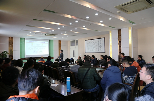 | 2018年12月14日,陜西師范大學(xué)李興偉研究員來(lái)我院做學(xué)術(shù)交流,我院有機教研室師生參加了交流會(huì )。 李興偉研究員介紹了通過(guò)對底物、催化劑、添加劑、反應條件的調控,實(shí)現了碳氫鍵活化與官能化反應中化學(xué)、立體、區域選擇性的有效控制。李興偉研究員的講解深入淺出,交流會(huì )上與師生還進(jìn)行了深入的交流和探討。