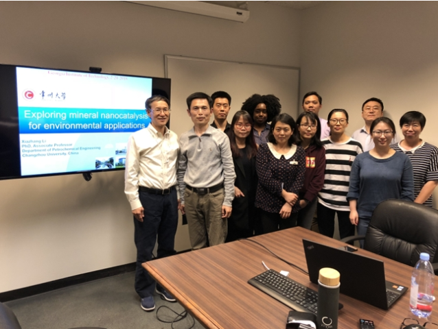 受?chē)易匀豢茖W(xué)基金與江蘇省國際合作項目資助,2018年1-2月,我室教師李霞章副研究員赴美國特拉華大學(xué)進(jìn)行短期科研合作,期間受該校先進(jìn)電子顯微中心主任Ni Chaoying教授邀請,作了題為“Mineral-based nanocatalyst for environmental applications”的學(xué)術(shù)報告,另外還受佐治亞理工學(xué)院Chen Yongsheng教授邀請,赴該校做了題為 “Exploring mineral nanocatalysis for environmental applications”的學(xué)術(shù)報告,介紹了近年來(lái)團隊成員在新型納米礦物材料的構建及環(huán)境催化應用領(lǐng)域取得的相關(guān)成果以及最新進(jìn)展,并與兩校相關(guān)課題組的師生進(jìn)行了深入的探討與交流。通過(guò)學(xué)術(shù)報告,增進(jìn)了雙方研究方向的了解,達成了進(jìn)一步合作的意向,提升了我院國際學(xué)術(shù)交流合作水平。