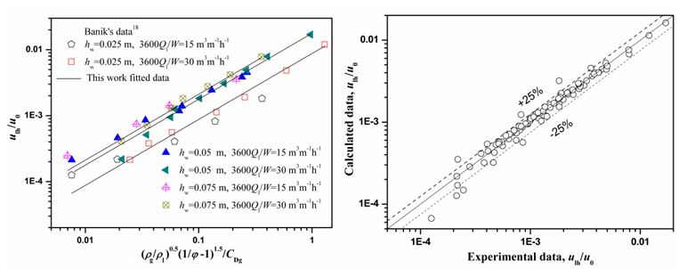 ,模型計算結果得到了實(shí)驗數據的驗證。模型顯示:非理想流動(dòng)系數(前期工作定義)是影響泄漏速率的關(guān)鍵。 過(guò)程強化是實(shí)現化工節能、減排的重要途徑。對于蒸餾過(guò)程而言,深入理解大型塔設備中多相流的流體力學(xué)行為和傳質(zhì)行為是實(shí)現科學(xué)強化的基礎。王俊博士在前期研究工作中認為氣相偏流是造成大型塔設備分離效率顯著(zhù)降低的關(guān)鍵,并給出/導出了偏流機理和理論模型(Wang Jun, et al. AIChE J, 2015, 61: 1032–1042.);該模型被成功應用到板式塔設備傳質(zhì)特性參數——相界面積的預測中(Wang Jun. et al. AIChE J, 2016, 62: 905–915)。至今,王俊博士圍繞該領(lǐng)域氣相偏流模型研究在A(yíng)IChE Journal期刊上已連續發(fā)表了3篇研究論文。系列研究成果證實(shí)了氣相偏流模型具有廣闊的應用前景。