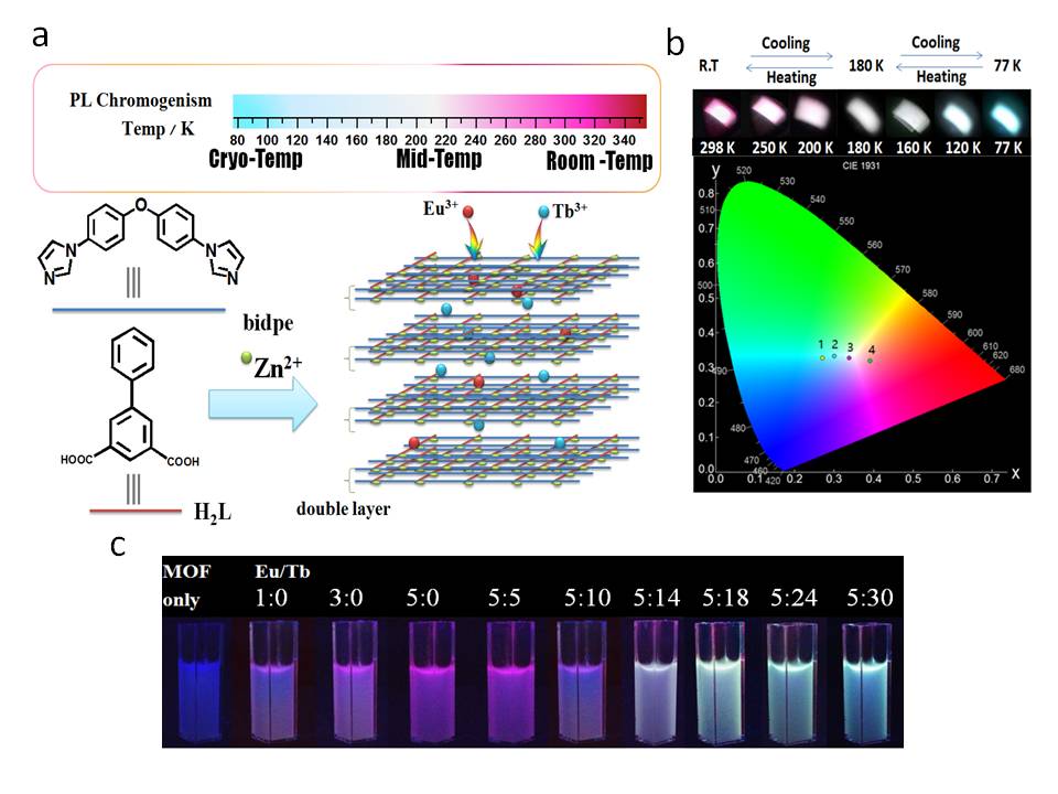 | Tuning the Solid-State White Light Emission of Postsynthetic Lanthanide-Encapsulated Double-Layer MOFs for Three-Color Luminescent Thermometry Applications Liya Qiu?, Chengfeng Yu?, Xiaoling Wang?, Yangbin Xie?, Alexander M. Kirillov?§, Wei Huang*?, Jipeng Li?, Peng Gao?, Ting Wu?, Xiangwei Gu?, Qi Nie?, and Dayu Wu*? ? Jiangsu Key Laboratory of Advanced Catalytic Materials and Technology, Advanced Catalysis and Green Manufacturing Collaborative Innovation Center, School of Petrochemical Engineering, Changzhou University, Changzhou, Jiangsu213164, People’s Republic of China. ? Centro de Quimica Estrutural, Instituto Superior Tecnico, Universidade de Lisboa, Av. Rovisco Pais, 1049-001 Lisbon, Portugal. § Peoples’ Friendship University of Russia (RUDN University), 6 Miklukho-Maklayast., Moscow 117198, Russian Federation. 近日,吳大雨課題組通過(guò)后修飾方法成功合成了一例稀土嵌入二維雙層金屬有機框架(MOF)晶態(tài)材料,通過(guò)精準調控稀土離子的摻雜比例,實(shí)現了MOF材料的全彩色指紋發(fā)光。這類(lèi)二維材料展現出優(yōu)良的溫度傳感功能,對溫度變化反應靈敏、可逆切換。有望應用在寬溫區(幾K到670 K)以及極端環(huán)境下的溫度計領(lǐng)域。 原文鏈接:https://pubs.acs.org.ccindex.cn/doi/pdf/10.1021/acs.inorgchem.9b00084.