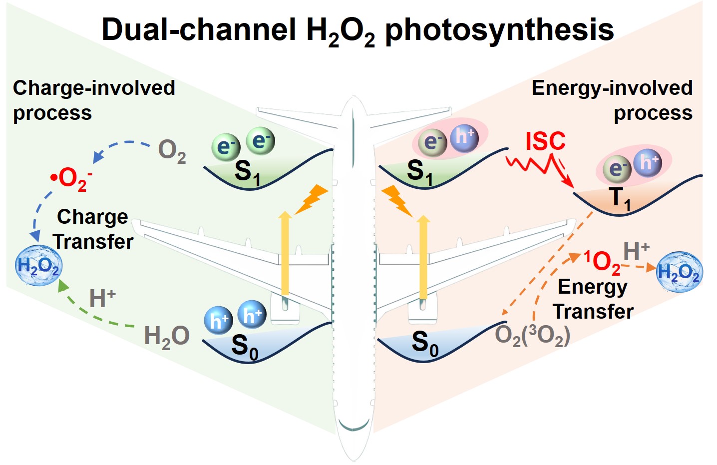 共軛多孔聚合物材料,包括共軛有機聚合物(COPs)和共軛微孔聚合物(CMPs)等,因其高比表面積、高度共軛的多孔骨架結構以及結構多樣性可調等特點(diǎn),在光催化合成過(guò)氧化氫(H2O2)領(lǐng)域發(fā)展迅速。然而,目前仍存在若干亟待解決的問(wèn)題,例如氧氣吸附能力不足、質(zhì)子供應有限以及能量路徑較弱等。對此,顧培洋教授團隊的周仕元博士,提出了一系列新穎的材料設計策略,相關(guān)成果發(fā)表在J. Am. Chem. Soc., Angew. Chem. Int. Ed.和Adv. Funct. Mater.等國際頂級期刊。具體內容如下:圖1 氯甲基功能化CMPs的反應機理、結構設計和合成路線(xiàn)示意圖(1)針對氧氣吸附能力不足的問(wèn)題,在CMPs材料中通過(guò)后修飾反應引入吸電子基團是解決此問(wèn)題的好方法(圖1)。在之前的工作中引入磺酸基和季銨鹽(Adv. Funct. Mater.2025, 35, 2415244)的基礎上,我們首次將氯甲基引入CMPs中用于高效生產(chǎn)H2O2。在聚合物催化劑的制備中,氯甲基修飾的聚合物常用作傅-克烷基化等交聯(lián)反應的中間體,因其疏水性而未在光催化產(chǎn)H2O2領(lǐng)域引起重視。經(jīng)典的Blanc氯甲基化反