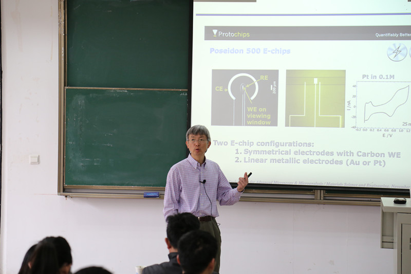 Recently, ProfessorChaoying Ni from the University of Delaware was invited to give lectures in our college. Professor Ni reported In-situ Electron Microscopy Analysis of Material Structure and Properties. Through pictures and examples, he explained some of his research and results, including the application of modern electron microscopy in materials science, oxide nanostructures and functions, surface and interface catalysis, advanced composite materials and so on. At the end of the report, Professor Ni discussed with the teachers and students on the spot anddetailedly answered their questions.